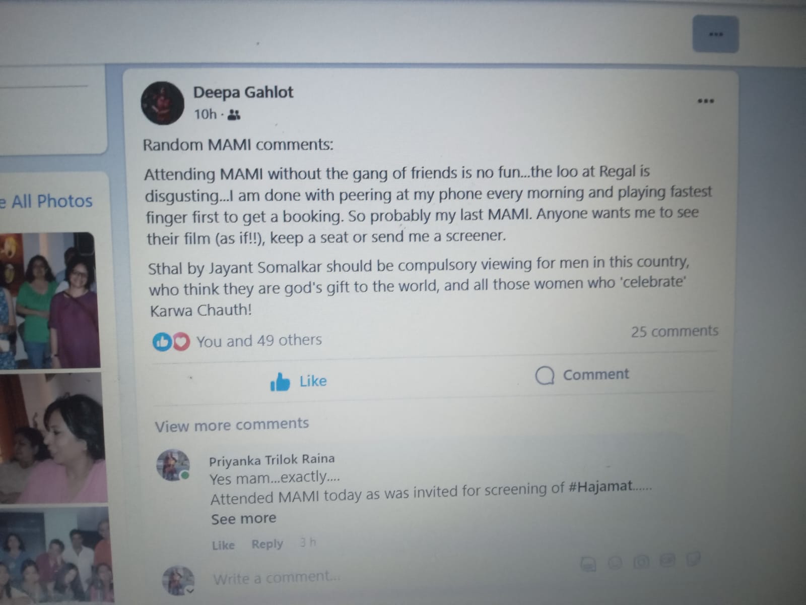Sorry to say would be my last MAMI to attend; and if you want me – send me special invites or Online Screeners as mentioned by DEEPA GAHLOT Too