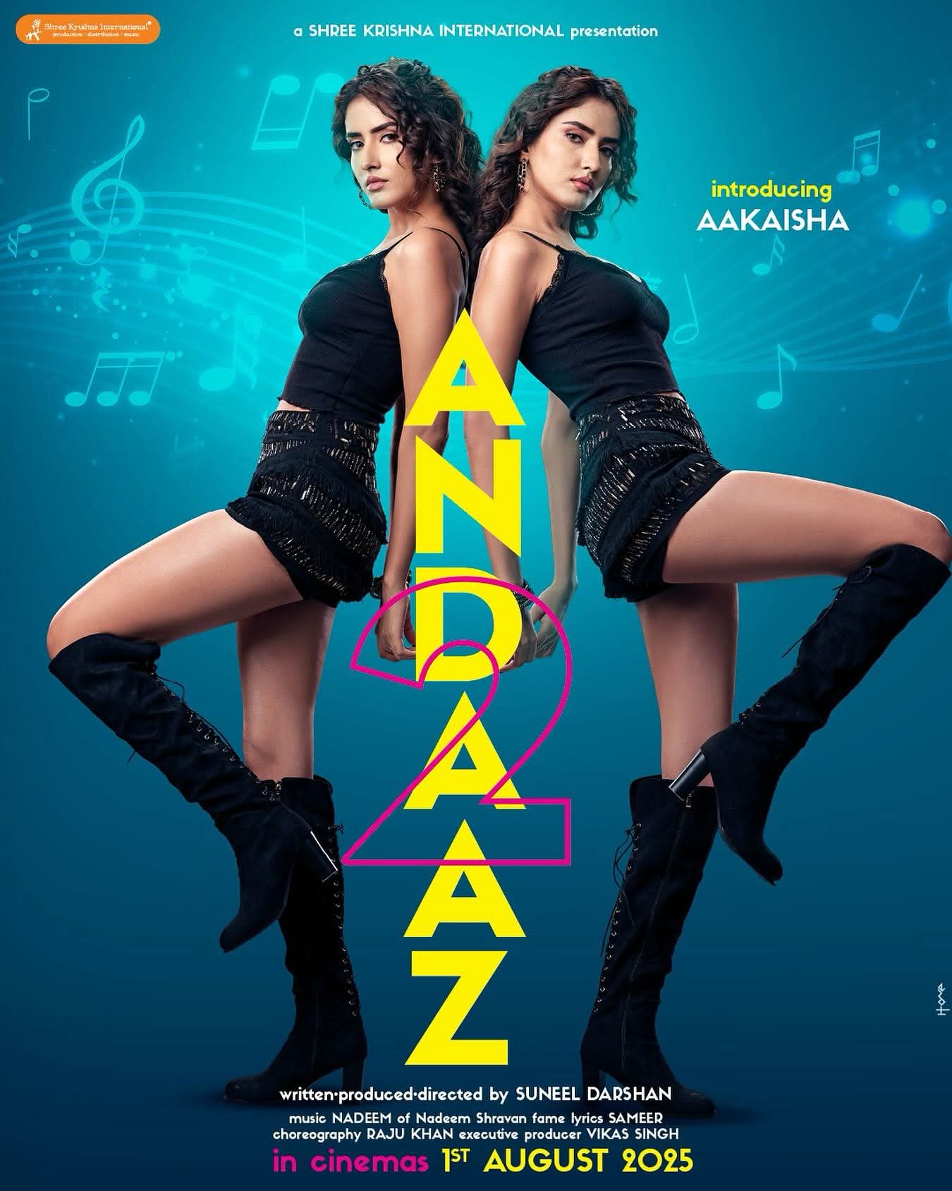 On this Filmmaker Suneel Darshan says, “My latest humble offering ANDAAZ 2 featuring melodies by composer Nadeem (of Nadeem Shravan fame) & lyricist Sameer, introducing Aayush Kumar, Aakaisha & Natasha Fernandez to hit screens worldwide on August 1.”